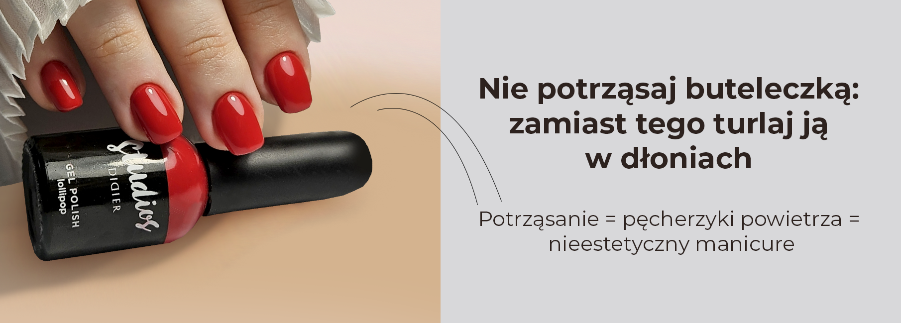 ✅ Nie potrząsaj lakierem – turlaj go w dłoniach.