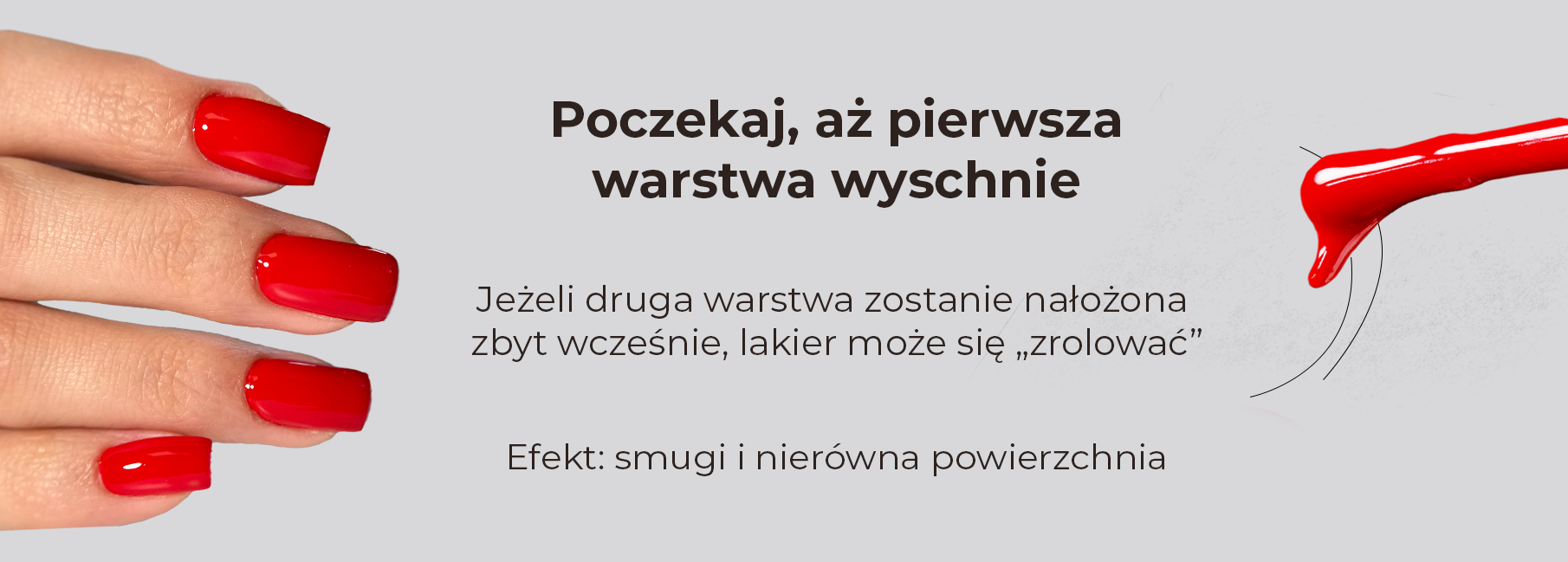 2. Poczekaj, aż pierwsza warstwa lakieru wyschnie – bądź cierpliwa!