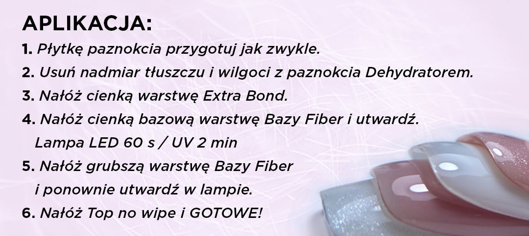 5. Nałóż kolejną warstwę wybranego koloru Fiber Base i włóż do lampy LED 60s / UV 2min (przy długości fali 395-405nm)