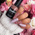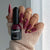 Stylizacja z wzorkami z wykorzystaniem wiśniowego lakieru hybrydowego Studios Didier silhouetteLakier hybrydowy Studios Didier - Silhouette, 8ml