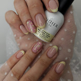Nałóż 1 lub 2 cienkie warstwy wybranego lakieru hybrydowego Macarons. Ilość warstw zależy od pożądanego efektu i oczekiwanej ilości drobinek