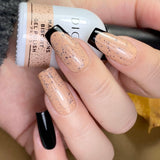 Nałóż 1 lub 2 cienkie warstwy wybranego lakieru hybrydowego Macarons. Ilość warstw zależy od pożądanego efektu i oczekiwanej ilości drobinek
